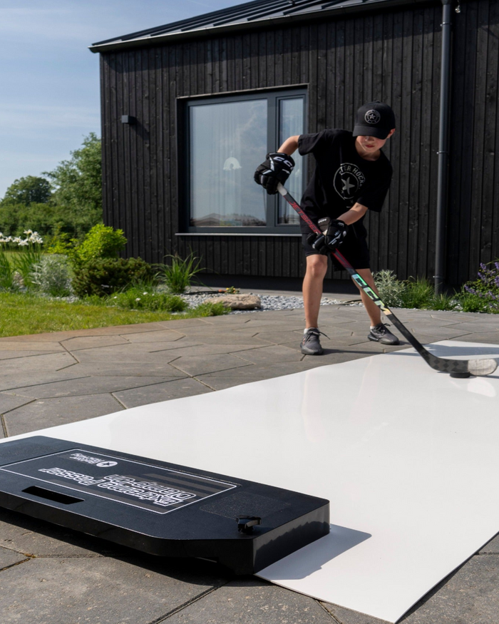 Med Extreme Hockey Passing Kit kan du ta din hockeyträning till nästa nivå direkt på uppfarten, i garaget eller hemma i källaren. Kitet innehåller 10 st Extreme Hockey Flooring Tiles (ca 2 m²) som ger ett fantastiskt glid samt vår Extreme Passer Clamp-On, vår populäraste passare som enkelt monteras på alla typer av skottplattor eller tiles.
